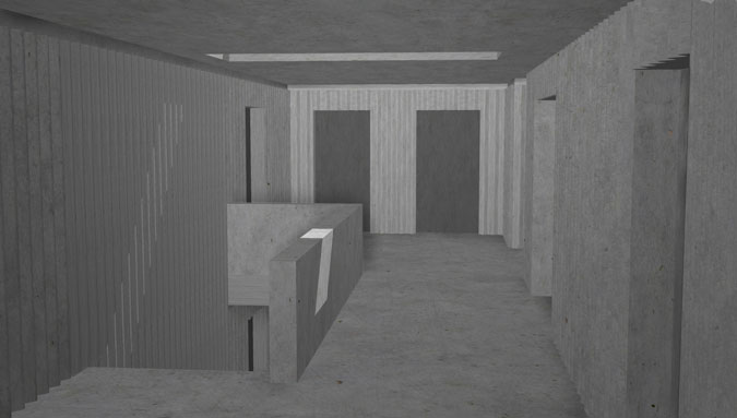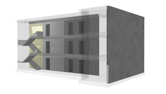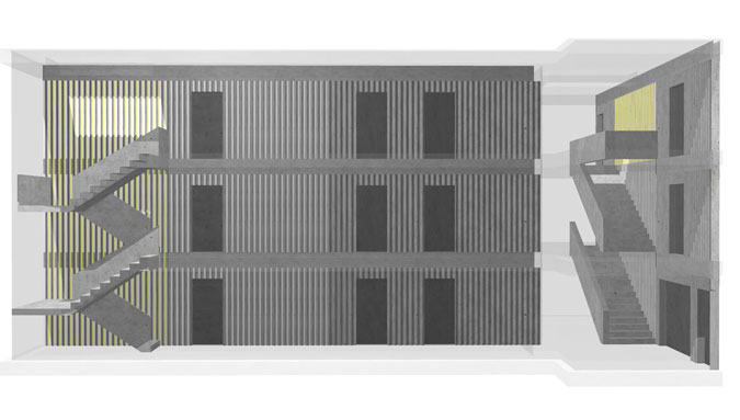 L’intervention prendra place dans les espaces de distribution de la partie de tête du bâtiment; plus précisément, sur un des murs de chacune des cages d’escalier.