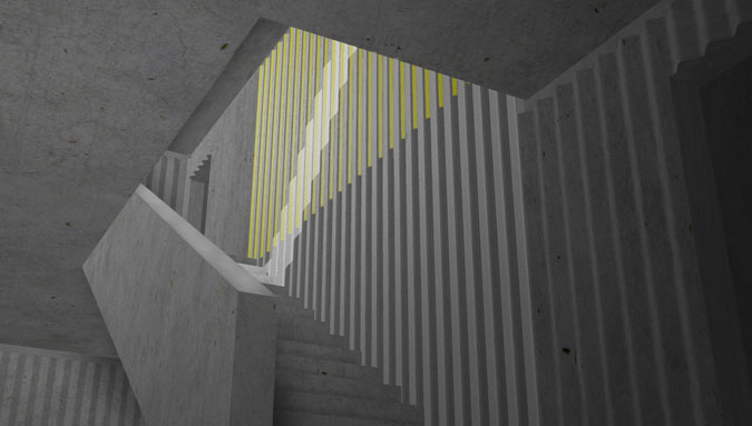 L’intervention prend forme et trouve sa place en travaillant avec ces trois caractéristiques constitu- tives de cette partie du bâtiment.