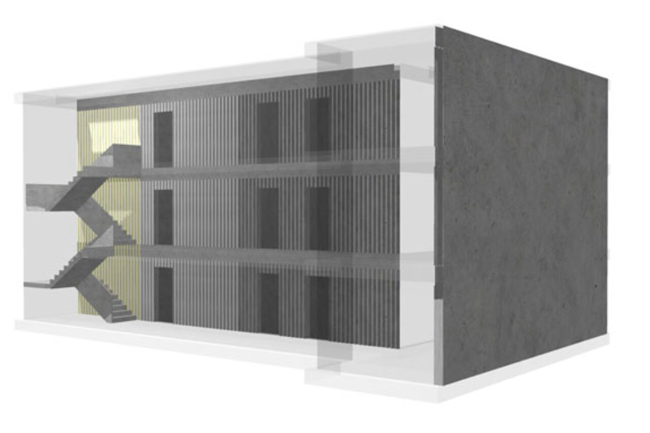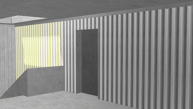 L’intervention prend forme et trouve sa place en travaillant avec ces trois caractéristiques constitu- tives de cette partie du bâtiment.