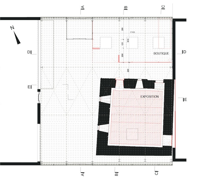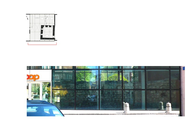 Projet de création d’une boutique et d’un espace d’exposition à côté et dans les vestiges du XIIe siècle de la Tour Bouvier à Villeneuve.