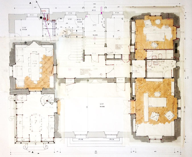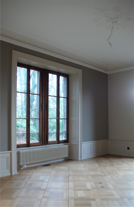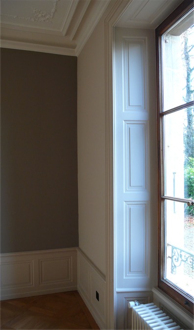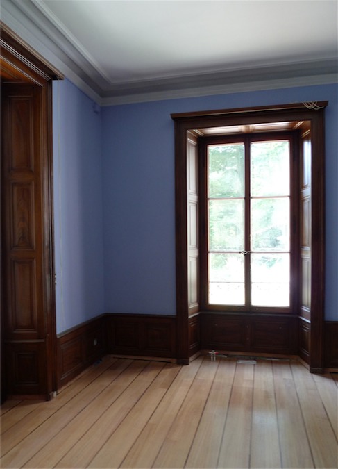 Cette façon de faire a permis de conserver les planchers, les plafonds, les moulurations, les papiers peints et les boiseries de soubassement. Une restauration attentive de ces éléments a été faite.