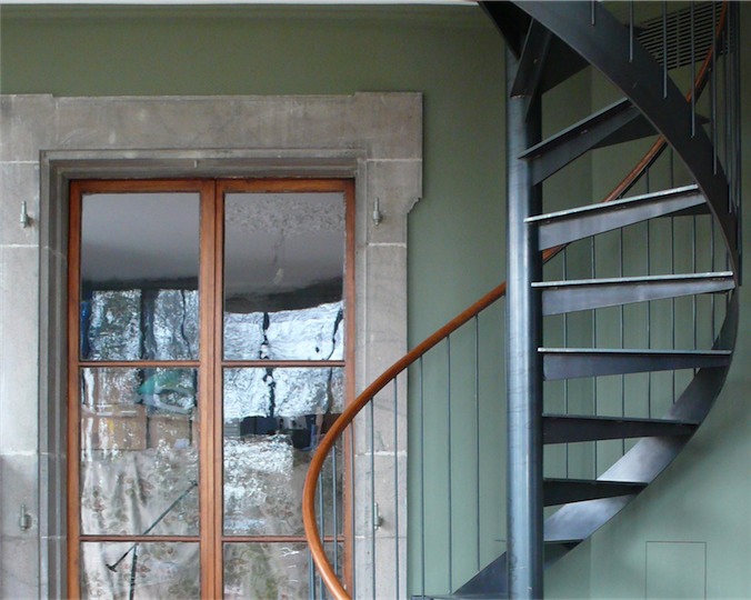 Le hall et la montée d’escaliers ont été restaurés et séparés de l’appartement du rez par une porte en grande partie vitrée afin de garder la perception complète des espaces de distribution d’origine.
