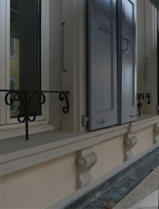 Les encadrements de molasse ont du être restauré également car la pierre avait fusé sous les peintures étanches à l’humidité.