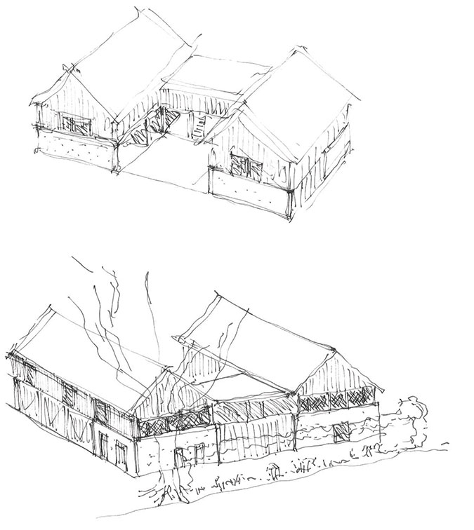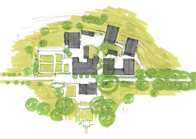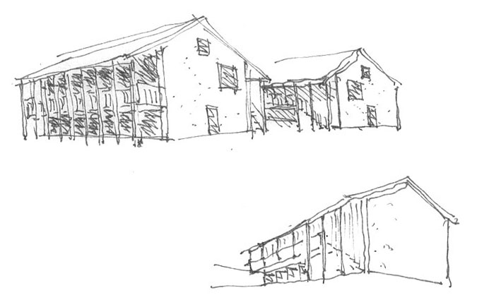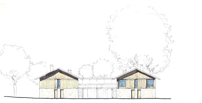 Projet d’implantation de six logements familiaux et d’activité dans le hameau d’une campagne datant du début du XIXe siècle.