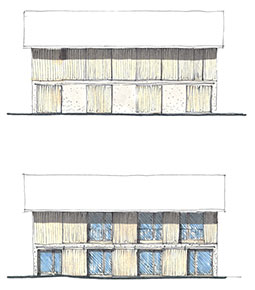 Remplacement de deux bâtiments existants récents. Implantation de deux bâtiments neufs.