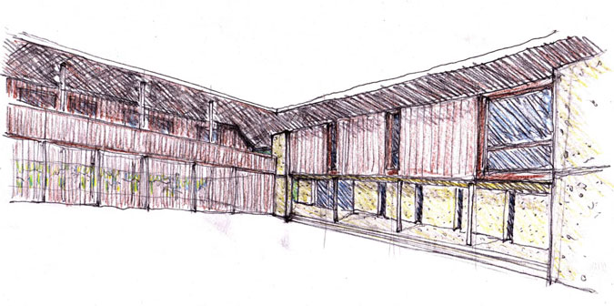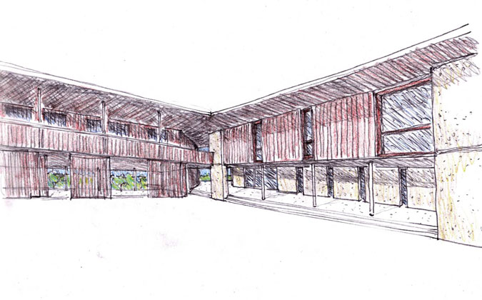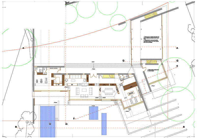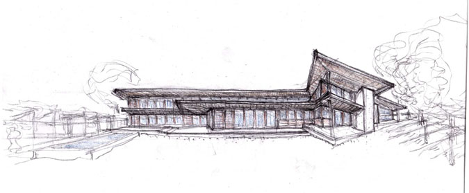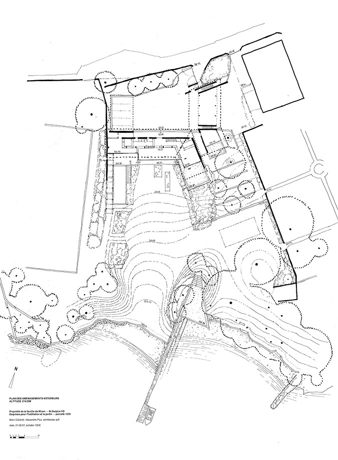 Projet de maison de maître au bord du lac, avec dépendance, jetée, abris à bateaux et aménagement du parc.