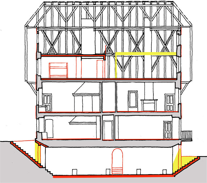 Transformations intérieures d’une ancienne bâtisse bernoise des salines de Salins, Ollon, Vaud