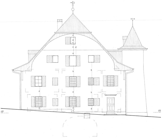 Bâtiment inscrit en note 2 au recensement architectural du canton, bâtiment construit dès la fin du XVIe siècle et fortement remanié au XVIIIe.