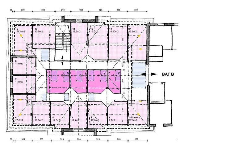 Création de 14 chambres et 5 locaux de soins. Surface env. 400m2.