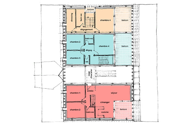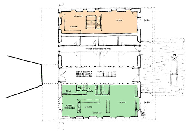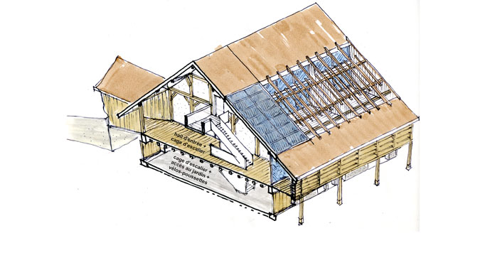 Projet pour la création de logements dans un grand rural protégé par la direction du patrimoine.