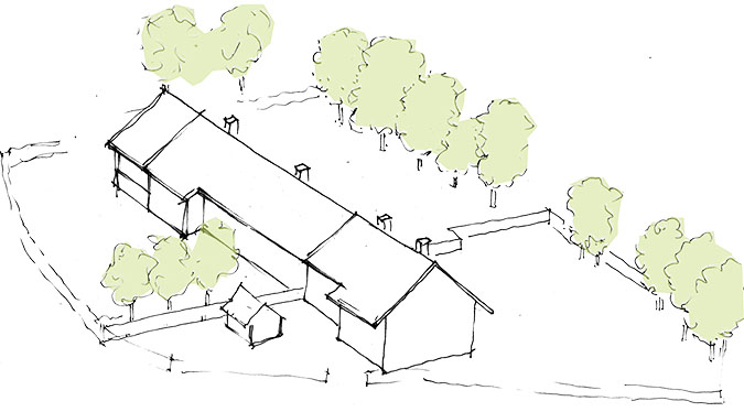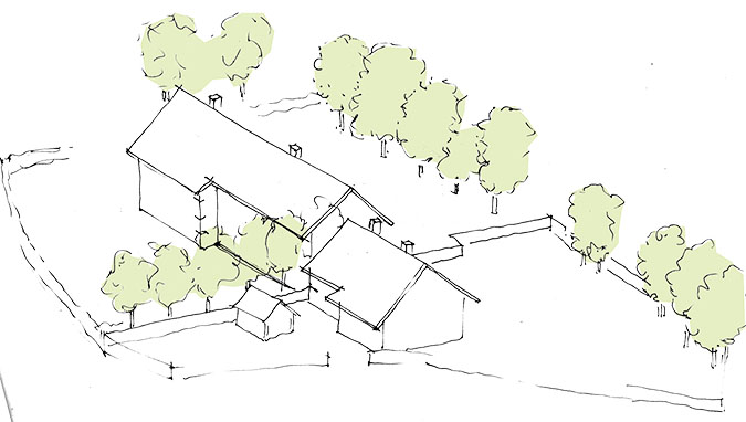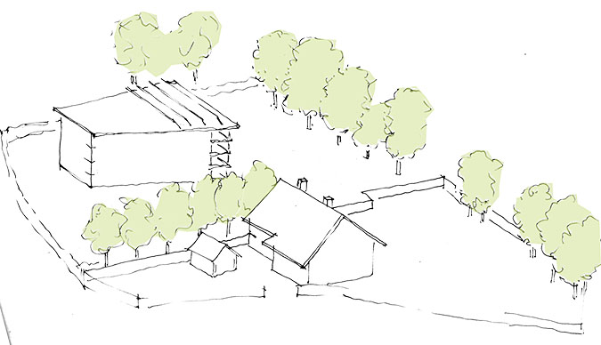 Création d’un volume supplémentaire au-dessus du garage de même hauteur que l’ensemble existant.