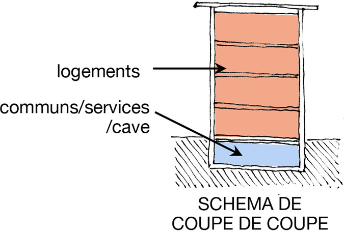 Exploitation maximum du volume constructible réglementaire, soit 4 niveaux habitables.