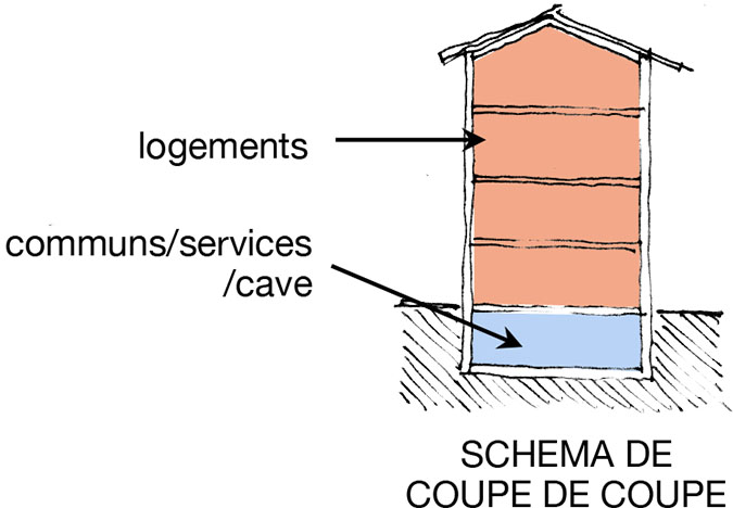 Création d’un sous-sol pour les locaux communs: cave, local techniques, local nettoyage, …