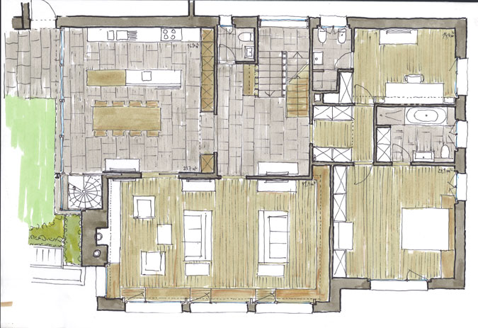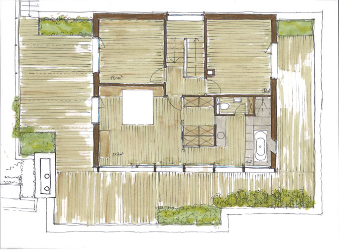Restructuration et agrandissement d’une villa et de son jardin, ajout d’un attique, création d’une piscine enterrée intégrée sous une terrasse jardin. Surface intérieure 790m2.
